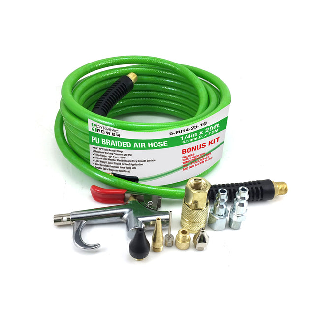 1/4" X 25 Ft PU Braided Air Hose Compressor with 10 pcs Accessories KIT